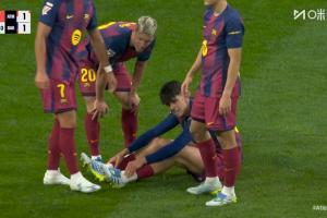 体育资讯04月05日讯 西甲第30轮,马竞对阵巴萨。60分钟,贝尔纳尔受伤坐在地上,被孔德换下。
